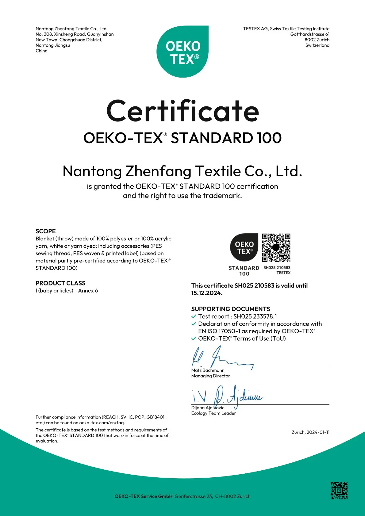 Certification: OEKO-TEX STANDARD 100