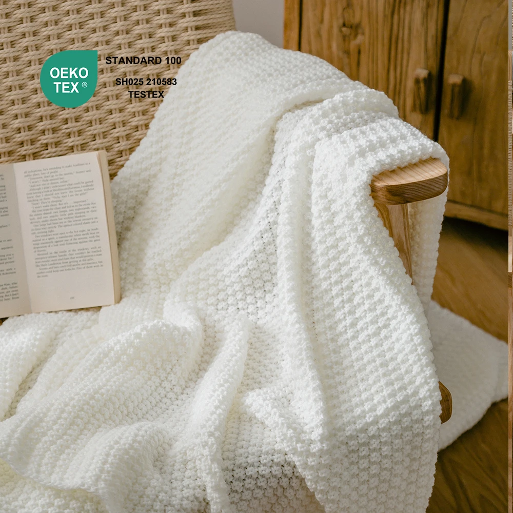 · This knitted throw is versatile enough to complement any room’s style. Throw it over your favorite seat or on your bed to add texture and personality. Soft enough for warm climates and warm enough for nights, the ultra-soft blanket is the perfect way to keep cozy all year long.· Our blanket are made of acrylic yarn. It feels incredibly soft and comfortable to the touch. Soft fit body, effectively regulate body temperature.