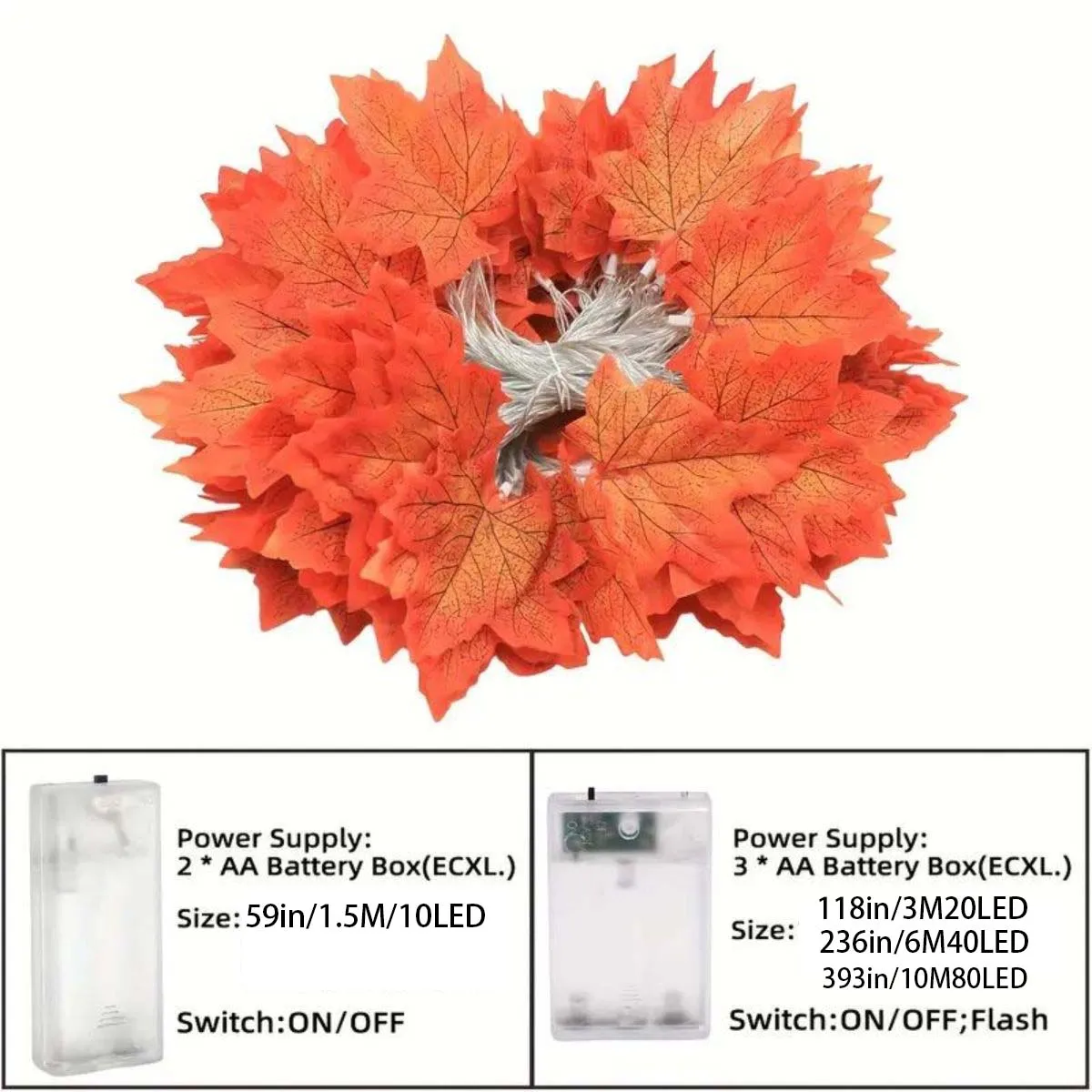 A battery-powered maple leaf string light designed for indoor seasonal décor. The warm glow and autumn leaf detailing make it suitable for Christmas, parties, weddings, and room decoration.