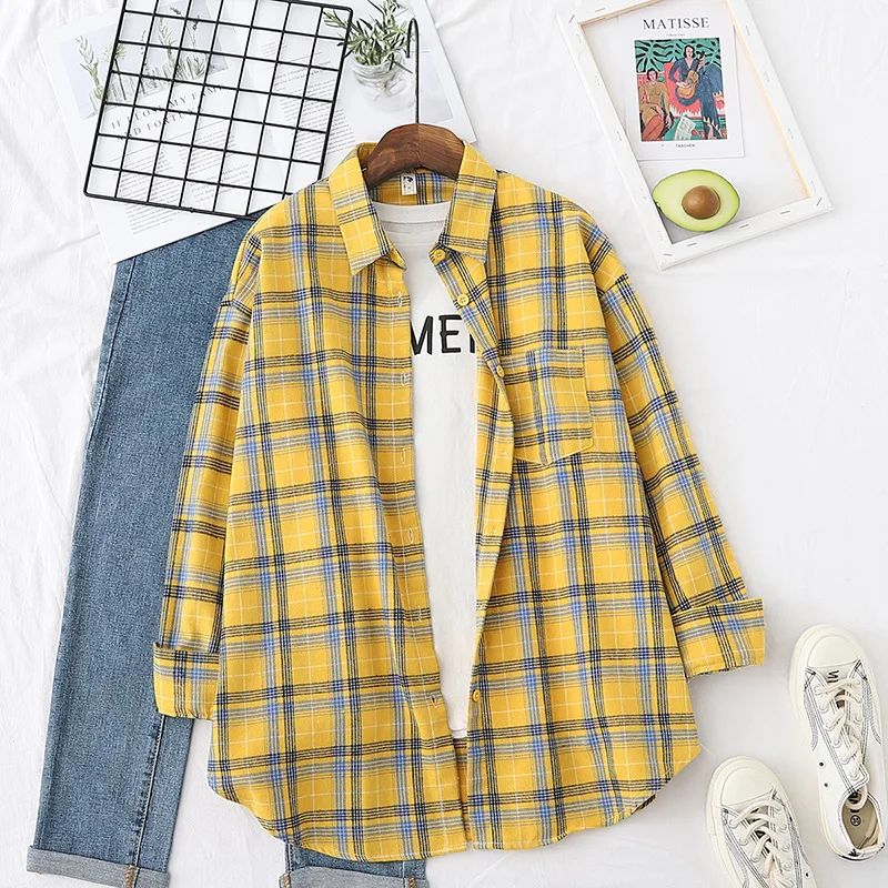 A loose-fit plaid shirt designed for casual wear during spring and autumn. Featuring a button-up front and breathable fabric, it is suitable for everyday outfits, work settings, and relaxed styling.